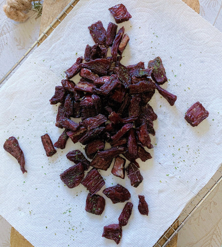 Attention meat lovers! 🧡 Try our beef bites made from REAL beef, not "beef by-products" or "beef parts". When it comes to the best jerky, the leaner the better! We pick the top rounds, (the eye of round), trim off the fats, and then dehydrate it for 10 hours to get the best flavors and textures.