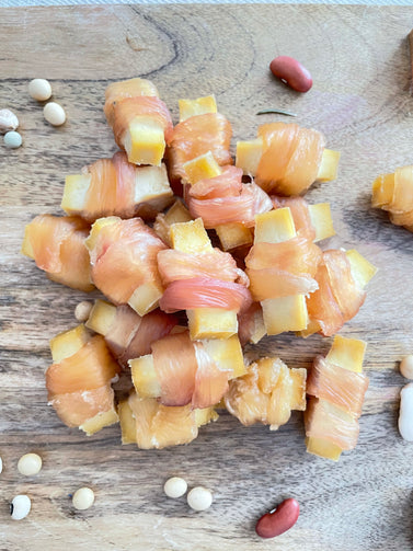 Feed as an "in-between-meal" snack, a treat, or a reward. Giving too much may cause an upset stomach or diarrhea. Please check the list of ingredients to avoid potential allergies. Please note that the odor of sour tofu is typical.