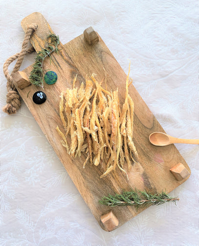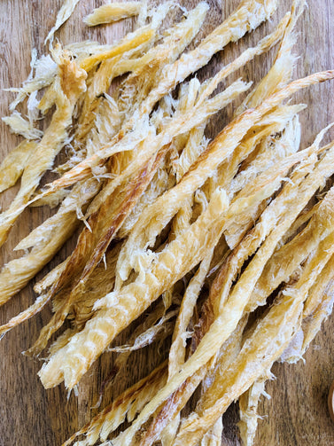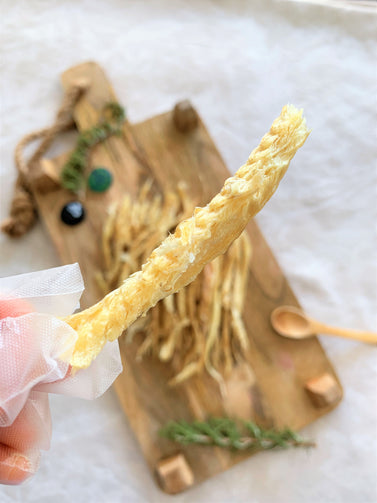 These pollock sticks might not smell delicious, but your furry friend will tell you otherwise. 😋 These sticks are made by using real dried pollock. We de-salt them overnight and dehydrate them to make them crunchy sticks. 😍 Even elderly dogs can benefit from this healthy treat! Your furry companion will surely love it. 👍👍
